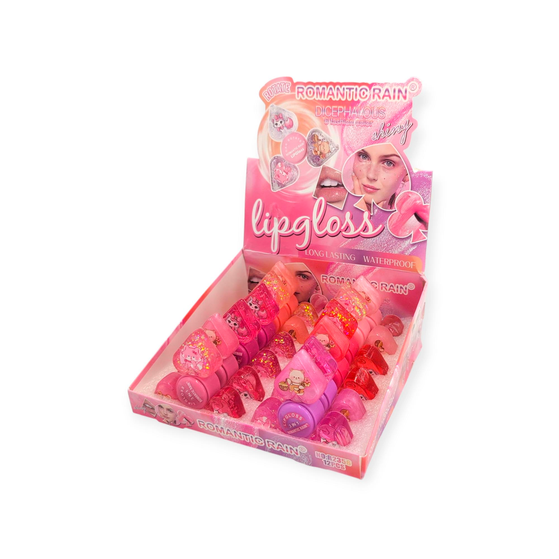 Brillo de labios giratorio 3 en 1, con tres tipo de lipgloss distintos en un divertido formato giratorio con diseño Kawaii.